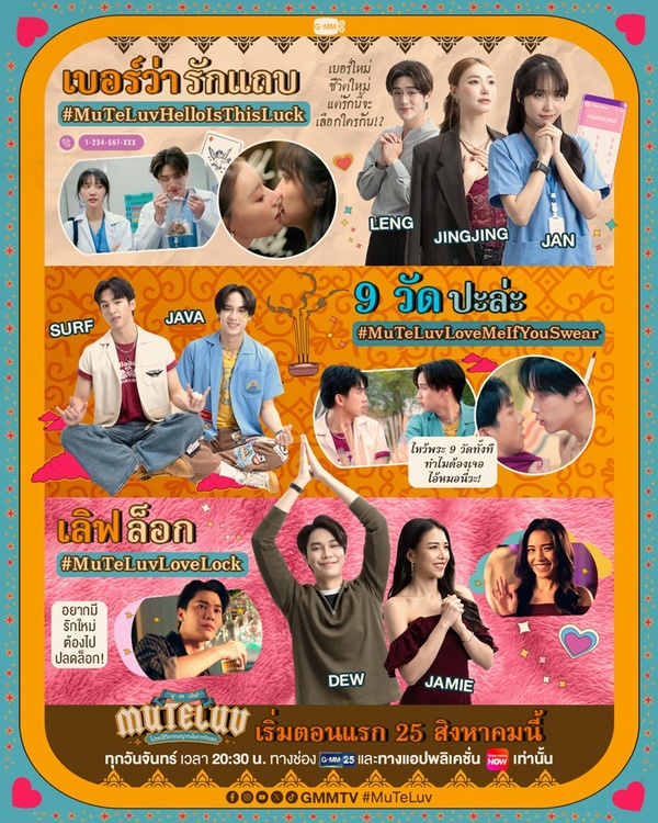 “MuTeLuv ตอน เบอร์ว่ารักแถบ Hello, Is This Luck?” EP.1 กวันจันทร์ เวลา 20:30 น. ทางช่อง GMM25 และทางแอปพลิเคชั่น TrueVisions NOW เท่านั้น เริ่มตอนแรก 15 ธันวาคมนี้
